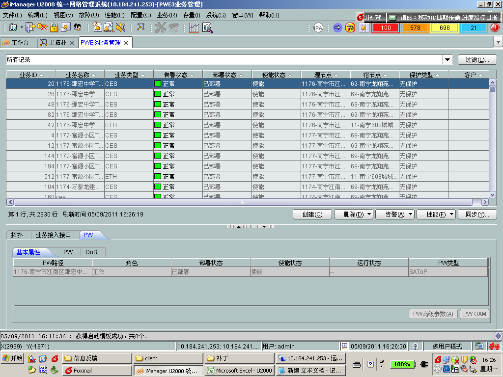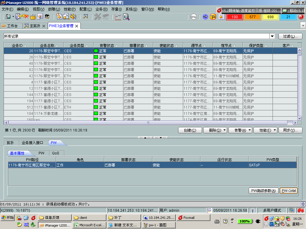 6、网元基本配置:打开网元管理器,配置网元时间同步,物理层时钟源优先级表,网元性能监视时间。